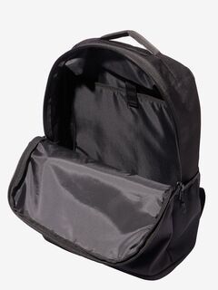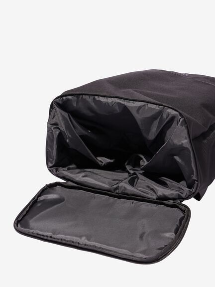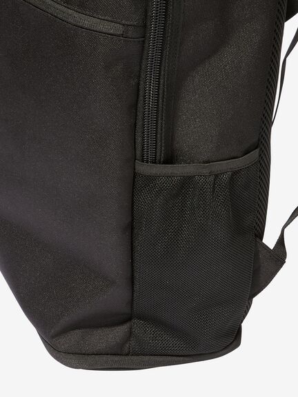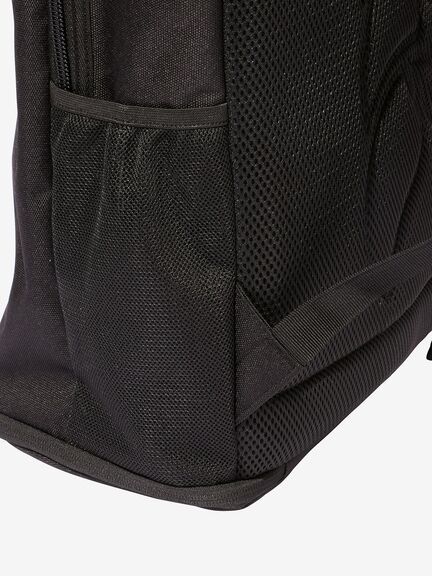 フロントには立体的なポケットを配備、両サイドにメッシュ素材のボトルポケットを装備しています。背面とショルダーの裏側は蒸れにくく、身体に負担のかかりにくいようメッシュ素材を使用しています。容量27L。