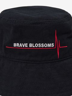 フロントにはラグビー日本代表の愛称である「BRAVE BLOSSOMS(ブレイブ ブロッサムズ)」、側面には桜エンブレムとカンタベリーロゴの刺繍がほどこされています。