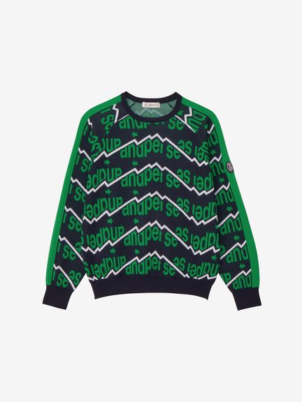 軽さとストレッチ性を追求したアクティブニットのジャカード編みクルーネックセーター。マルチストレッチ、マシーンウォッシャブル(洗濯機洗いOK)というハイスペックニットを、環境配慮型のPETリサイクル・ポリエステル糸を一部加えた形で実現しました。袖ライン入りのスポーティデザイン・クルーネックセーター。シャツ衿ともモックネックとも相性の良い衿ぐりサイズで仕上げています。