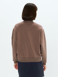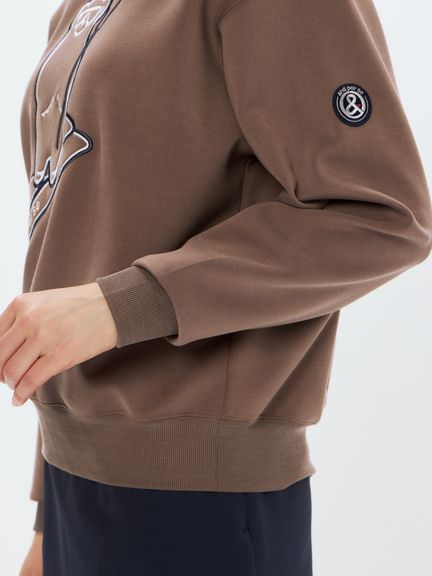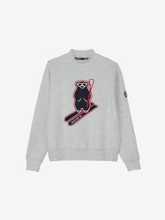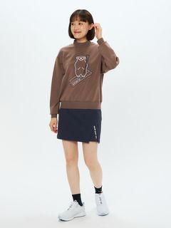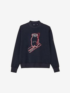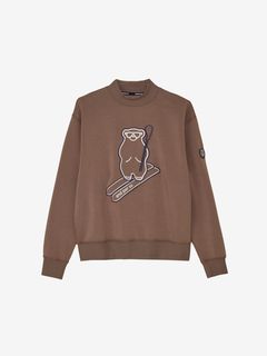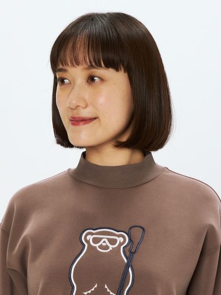肌触りの良いエアジャスタースウェットを使用したモックネックプルオーバーです。人体熱を含みやすい異形断面繊維により軽さと温かさを両立。マルチストレッチ・UVプロテクト(UPF50+、紫外線カット率95%以上)機能を兼備している上に、マシュマロのようにソフト&スムースな風合いが魅力です。フロント部分にand per se 2025FWシーズンテーマとなる"ベアー"モチーフを配したデザインが印象的。冬場のラウンドを意識した、程よいフィット感のリブ使いモックネックを採用しています。