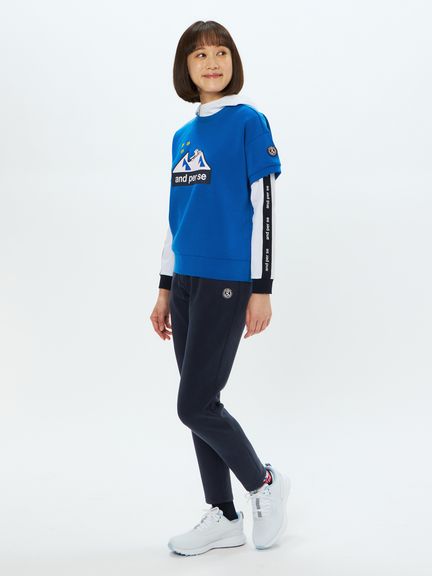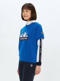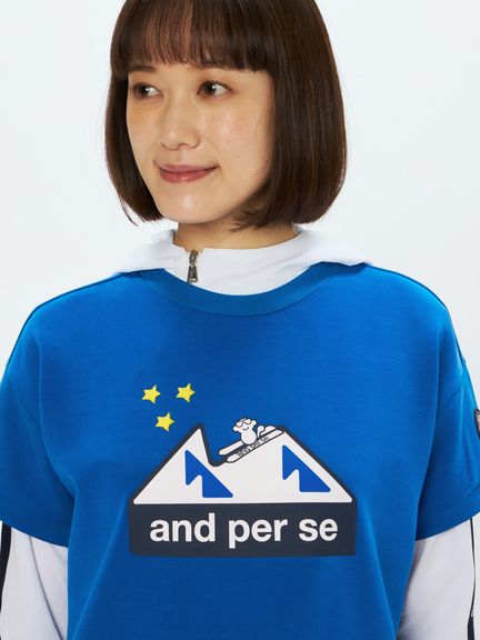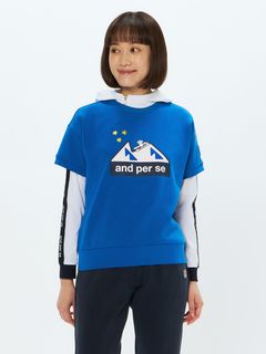 ぐいぐい伸びるストレッチ性&肌触りの良い風合いを兼ね合わせたショットスムーザー・スウェットの半袖スウェットプルオーバー。とてもソフトで滑らかな肌触りのライトウェイト・ダンボールニット素材(環境配慮型のPETリサイクル・ポリエステル糸を一部使用)に、マルチストレッチ機能とUVプロテクト(UPF50+、紫外線カット率95%以上)機能をプラス。ゆったりとしたワイドな身巾&コンパクトな丈感で仕上げた、可愛らしいシルエットと動きやすさを両立させたデザイン。and per se 2025FWシーズンテーマを表現した胸部分モチーフがコーディネートに新鮮さを与えてくれます。