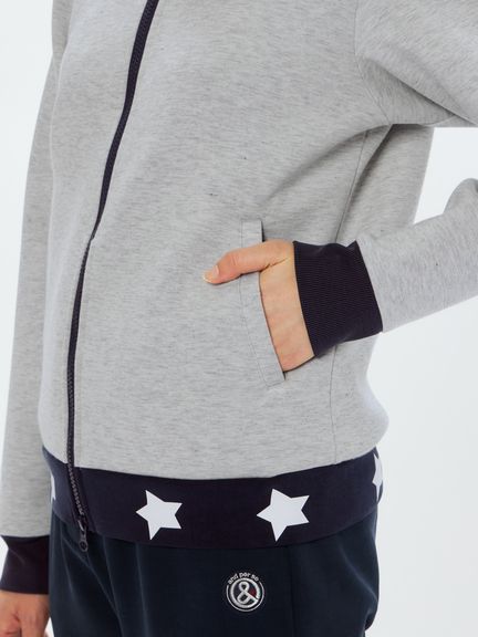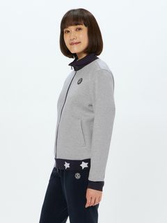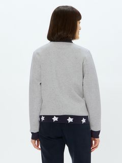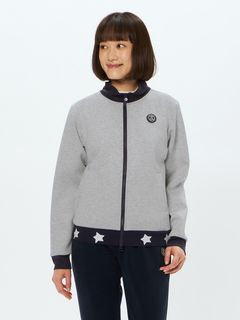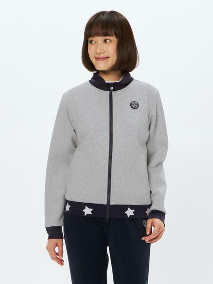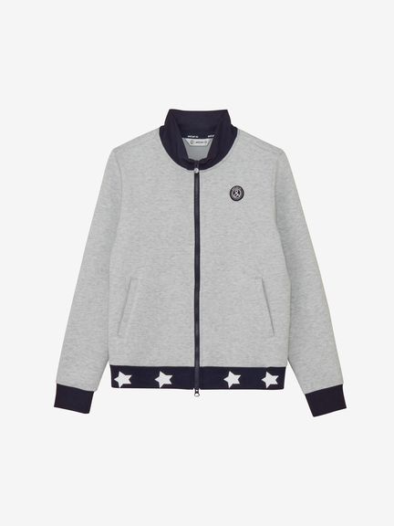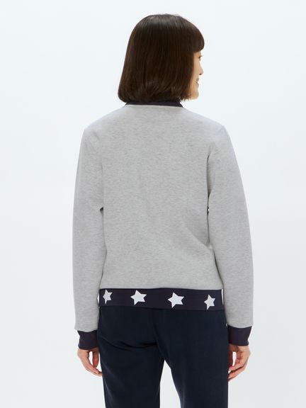 ぐいぐい伸びるストレッチ性&肌触りの良い風合いを兼ね合わせたショットスムーザー・スウェットの半袖スウェットブルゾン。とてもソフトで滑らかな肌触りのライトウェイト・ダンボールニット素材(環境配慮型のPETリサイクル・ポリエステル糸を一部使用)に、マルチストレッチ機能とUVプロテクト(UPF50+、紫外線カット率95%以上)機能をプラス。さまざまなアイテムとの着合わせを楽しめるシンプルなスタンドカラーデザイン。やや長めのリブ設定&裾にあしらわれたand per se 2025FWシーズンモチーフの星柄プリントがコーディネートにメリハリをつけてくれます。