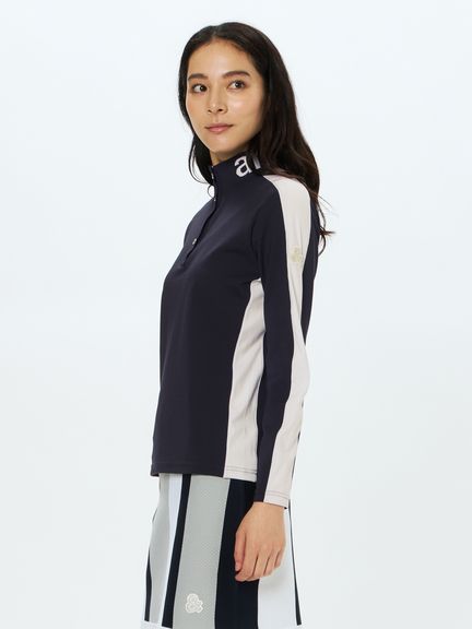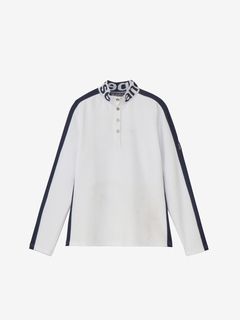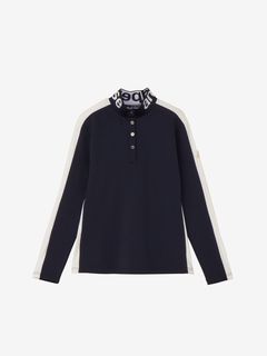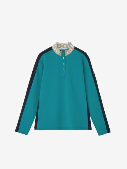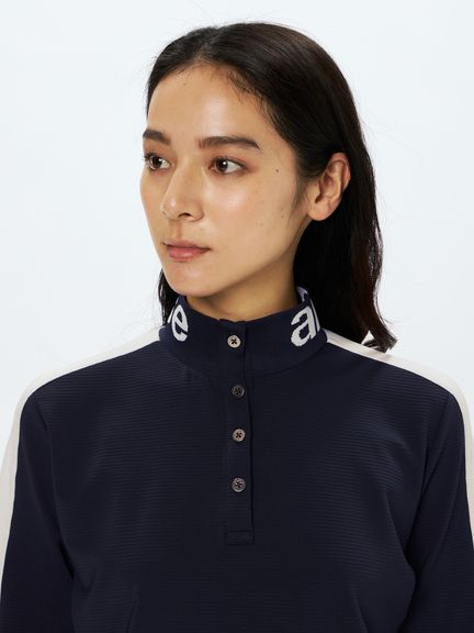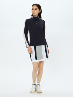 上質な光沢感と立体的ボーダー編地が映える4WAYリップル素材のボタンアップ長袖シャツです。伸縮性の高いマルチストレッチ素材で快適なスイングをアシスト。吸汗速乾・UVガード(UPF30-50+、紫外線カット率90%以上)機能も併せ持ったハイスペック素材を採用しています。サイドに配したラインデザインはアクセントだけでなく、シャープな印象を与える視覚効果を発揮してくれます。ボタンアップデザインだから、ハイネック、ポロ衿風といった2通りの着こなしが楽しめます。