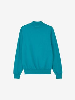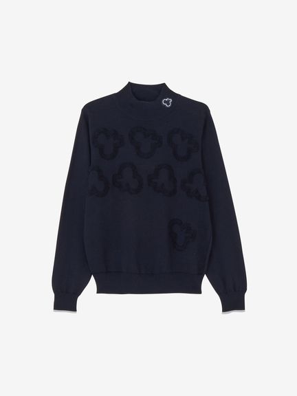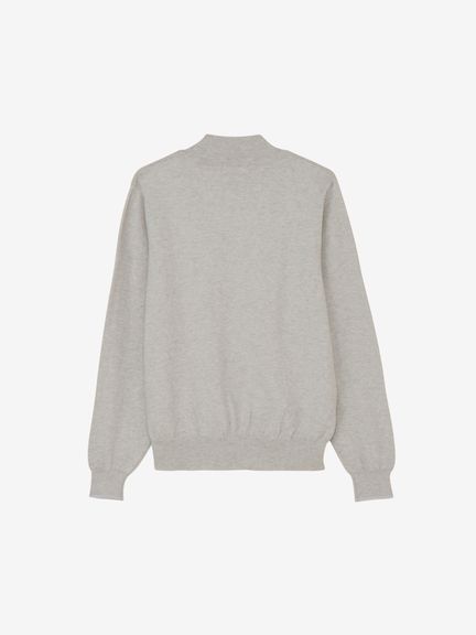 肌触りが心地よいニット。着脱や動きやすさに配慮したマルチストレッチを有しています。コットン糸にブレンドした僅かなウール糸(カシミヤ)が滑らかな肌触りとウォーム感をプラスします。また家庭洗濯が可能なイージーケアな点も嬉しいポイントです。フラットな天竺編みとパイル編みのロゴの対比が魅力。着回しの便利な無地のデザインですが、凹凸感のある表情がテクニカルなこだわりをのぞかせます。シンプルな見た目ですが、高級感のあるニットセーターが大人の上品なスタイリングを演出します。
