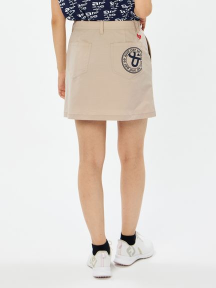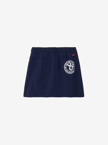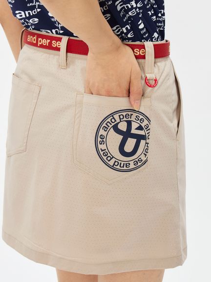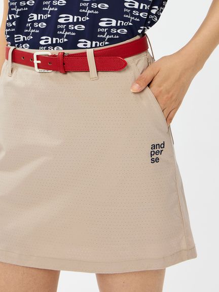 程よいハリ感のポリエステルタフタにパンチング加工を施した涼しげなサマースカート。スイングをアシストするマルチストレッチ、はっ水、抗菌防臭、通気といった酷暑を意識した機能を搭載。涼しさだけでなく軽量感ある着心地もポイントです。裏地(ホワイトのみ)には軽量メッシュを使用し、気になる透けに配慮しています。総丈(B.C.)S,Mサイズ41cm/L,LLサイズ42cm。