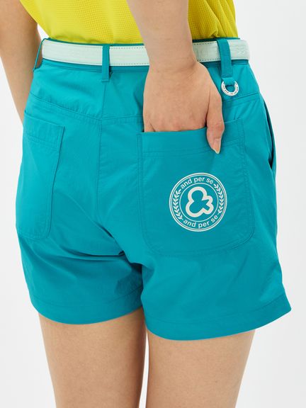 ストレッチ性だけでなく、裏側のべたつき軽減機能、UVプロテクト(UPF50+、紫外線カット率95%以上)機能、接触冷感、抗菌防臭と多機能を持つクールラスティング・Wクロス素材のショートパンツ。発汗量の多い状態でも肌にまとわりつきにくい、裏側を点接触組織で仕上げた特殊ドライ素材を使用。ウエストにゴム内蔵の三角形マチを入れた&3Dパターンを採用しており、高いフィット感と伸縮性を両立させたすっきりとしたシルエットのパンツです。色違いで持っていただくのもオススメです。