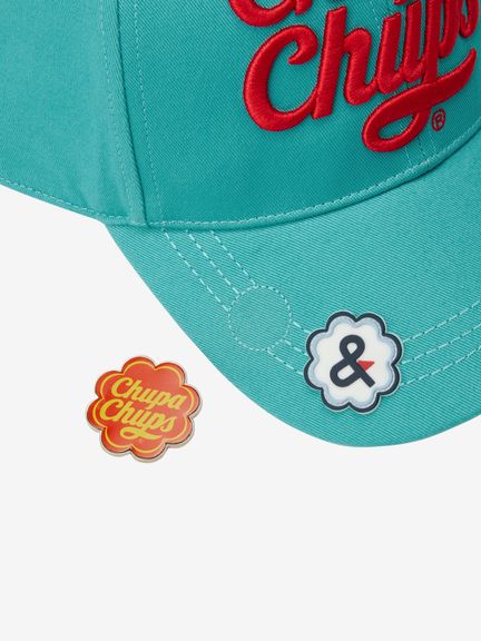スペインで誕生したキャンディ、チュッパチャプス(chupa chups)とのコラボレーションアイテム。コットン100% のツイル素材を使用したマーカー付のシックスパネルズキャップ。季節を問わずオールシーズンお使いいただけます。ツバにマグネットを内蔵しており、お気に入りのマーカーをスマートに着脱できます。後頭部の面ファスナーでサイズ調整が可能です。UVカット機能付きです。フロントにインパクトのあるチュッパチャプスのロゴをバイカラーで表現した、POPでCUTEなデザインです。ウエアとのお揃いのコーディネートもオススメです。
