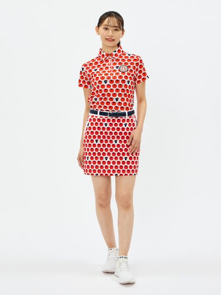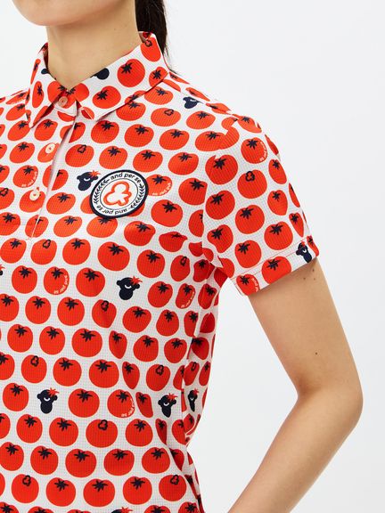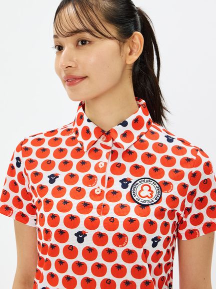 酷暑に必要な機能を備えたCOOL is COOL ソルケアエアリードットの半袖共衿シャツ。マルチストレッチ・吸汗速乾に加えて、高通気、遮熱、UVガード(UPF30-50+、紫外線カット率90%以上)機能も完備しており、心地よい着用感となっています。シーズンテーマのトマト柄を全面にプリントし、POP感の中にも清涼感も思慮したデザインとなっております。機能面もデザイン面も熱い夏の時期にピッタリなオススメの1枚です。