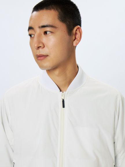 断熱中わたが流動的に形状変化。表地・裏地の伸縮性だけでなくガーメント全体がスウィングモーションをフォローする新世代の薄軽ウォーマー・シェイプフラクスのブルゾン。