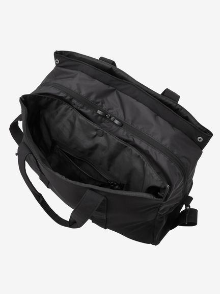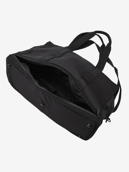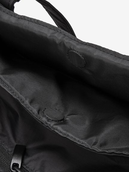 荷物の量に合わせて、上部にセットされているスナップボタンを使用してコンパクト形状にシフトすることも可能。表地にははっ水機能が施されており、利便性の高いハイスペック仕様でありながらもミニマルなデザインで仕上げられた&GOLFらしい洗練されたアイテムです。
