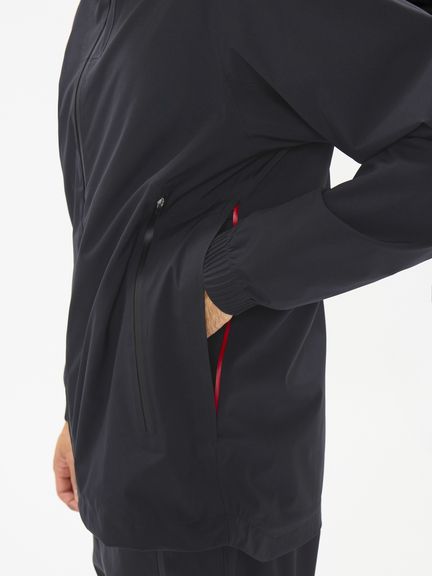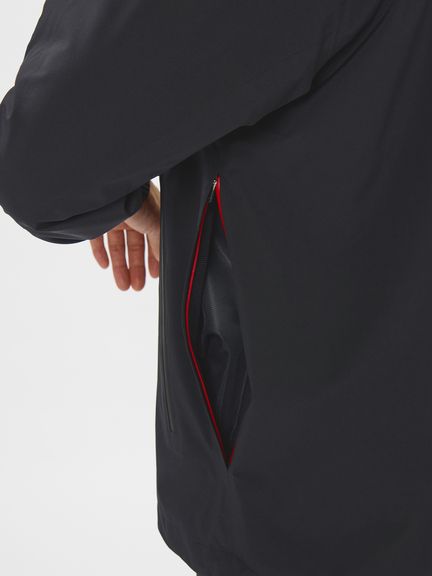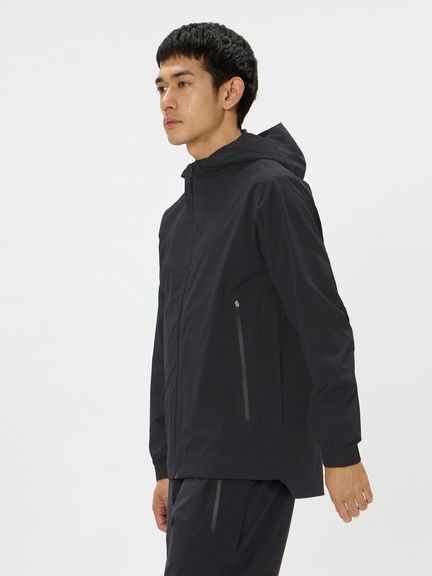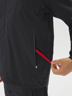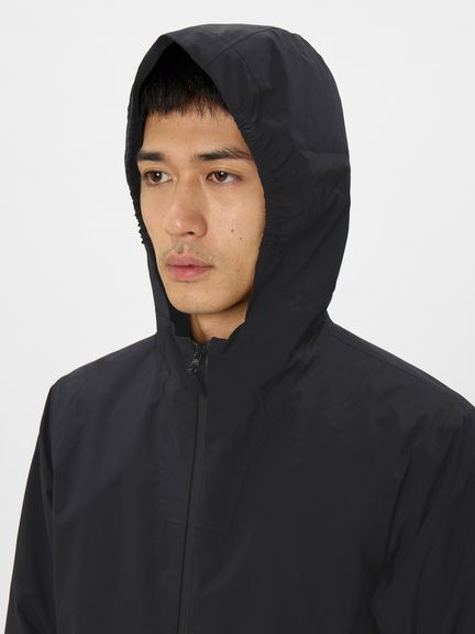 表地&裏地にアクリルコーティング軽量ファブリックを使用し、はっ水・防水透湿・ストレッチの機能を併せ持っている上に「空気を内側に含ませた際は空気が抜けにくい」のが魅力。