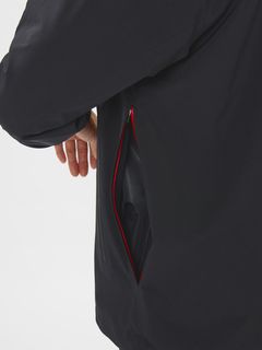 空気を内側に溜めて保温性を高めたい時には【左脇ファスナーを開けて空気を送り込み、速やかにファスナーを閉めると空気が抜けにくくする】ことが可能。寒さが和らいできた頃には【左脇ファスナーを開けて内包された空気を抜けば、1枚ものライトアウターの状態】となって、さらっと羽織ることが可能です。