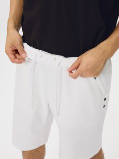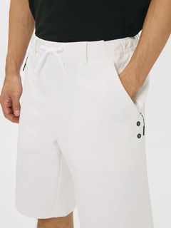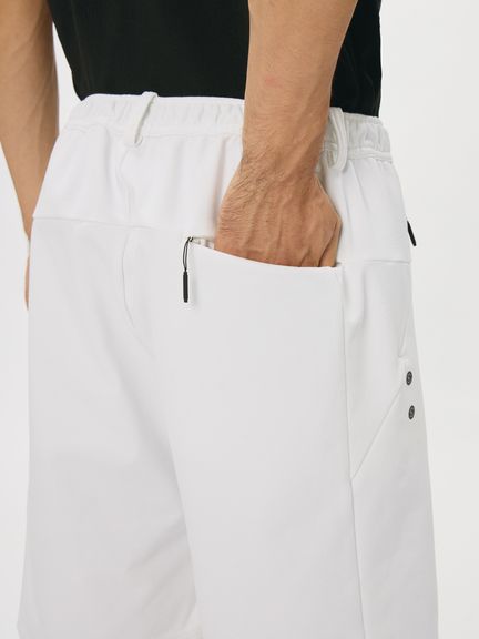 肌触りが良く、全方向へのストレッチ性を持つ裏毛カットソー(スウェット)素材「エアリー・フレンチテリー・エコ」を使用したユーティリティーハーフパンツ。