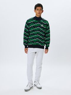 軽さとストレッチ性を追求したアクティブニットのジャカード編みクルーネックプルオーバーです。マルチストレッチ、アンチピリング、マシーンウォッシャブル(洗濯機洗いOK)というハイスペックニットを、一部環境配慮型のPETリサイクル・ポリエステル糸を加えた形で実現しました。シャツ衿ともモックネックとも相性の良い衿ぐりサイズで仕上げています。