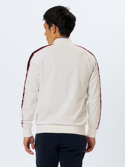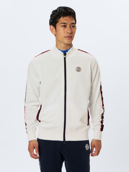 軽さとストレッチ性を追求したアクティブニットのスタンドカラーブルゾンです。マルチストレッチ、アンチピリング、マシーンウォッシャブル(洗濯機洗いOK)というハイスペックニットを、一部環境配慮型のPETリサイクル・ポリエステル糸を加えた形で実現しました。スポーティーな印象のライン使いデザインで仕上げたフルジップブルゾン。とても軽い風合いで仕上がっており、寒暖差の大きい季節のライトアウターとして重宝してくれます。
