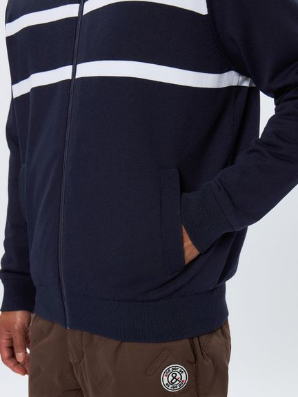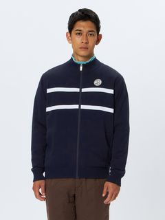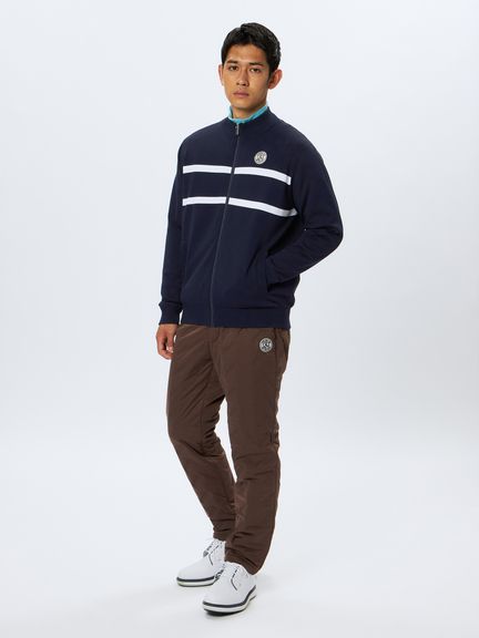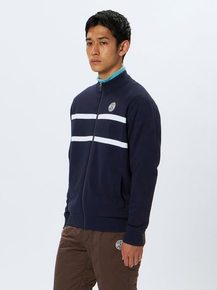 軽くて上品な質感が特長のソリストヒートニットを使用した、防風裏地使いのウインドシャッター・フルジップスタンドブルゾンです。吸湿発熱性を持つソリストヒート(帝人)糸に一部環境配慮型PETリサイクル・ポリエステルをミックスした、軽い仕上がりのニットに、薄くてしなやかな防風機能裏地をプラス。ニットの良さ(保温性)に防風性を加えたユーティリティーアイテム。メリハリのある色使いを施しながらも、着こなしやすいベーシックデザインで仕上げています。