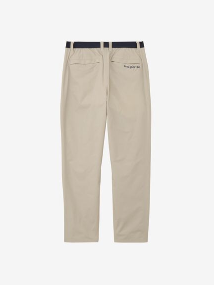 はっ水性と通気性(蒸れにくさ)の両方を併せ持つマルチウェザーパンツ。ストレッチ性・UVガード(UPF30-50+、紫外線カット率90%以上)機能・はっ水性・透湿性といった多くの機能を搭載した、ハリ感のあるタイプライター素材(一部環境配慮型のPETリサイクル・ポリエステル糸使用)。簡易的なレインパンツとしてご利用いただくことも考慮した、ゆとりのある設計でありながらも綺麗なテーパードシルエットをしっかりとキープ。非常に軽量で動きやすいプロダクトとなっているため日常使いにもおすすめです。