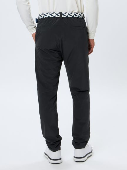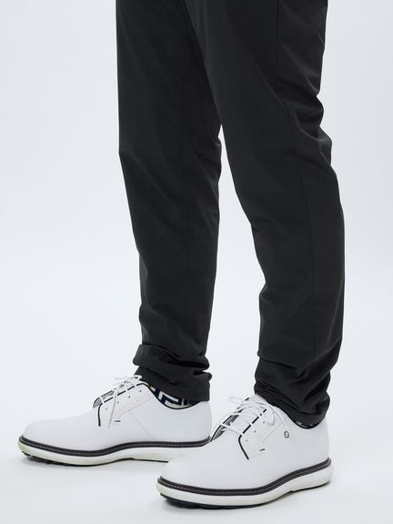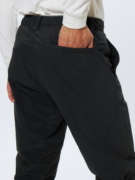 ロイカ糸(旭化成)を使用した繊細な組織のストレッチ素材を使用した防風ジョガーパンツです。表地はマルチストレッチ&はっ水の機能を併せ持つタフタ素材、中地には軽量仕上げの保温素材エアロサーモを使用しています。ウエストには滑り止めともなるジャカードゴムを使用、高級感のある仕立てとなっております。とても防風性&保温性が高いので、真冬でもインナーをはかなくとも十分暖かさを保てるのが魅力です。