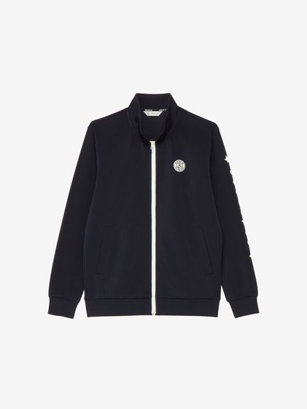 ぐいぐい伸びるストレッチ性&肌触りの良い風合いを兼ね合わせたショットスムーザー・スウェットのフルジップトラックジャケットです。とてもソフトで滑らかな肌触りのライトウェイト・ダンボールニット素材(環境配慮型のPETリサイクル・ポリエステル糸を一部使用)に、マルチストレッチ機能とUVプロテクト(UPF50+、紫外線カット率95%以上)機能をプラス。ゴルフプレイから日常生活まで、汎用性の高いスタンドカラーのトラックジャケットスタイル。背中部分に施された、ブランドロゴをデフォルメした大きめプリントがコーディネートにメリハリをつけてくれます。