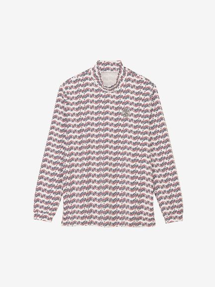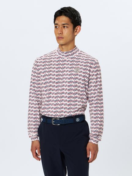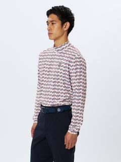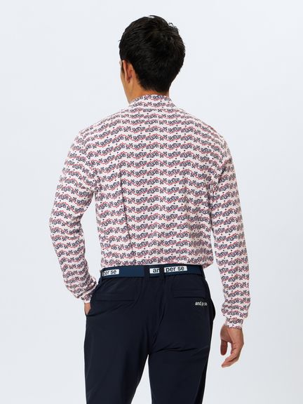 軽さと柔らかさ、伸縮性の高さを兼ね備えたショットスムーザー・カットソー素材の総柄プリント長袖モックシャツです。特殊構造を持つストレッチヤーンを効果的に配列した、着用時の締め付けが少ないノンスパンデックス・ストレッチ素材(環境配慮型のPETリサイクル・ポリエステル糸を一部使用)。更に吸汗速乾・UVプロテクト(UPF50+、紫外線カット率95%以上)機能を加えたハイスペック素材です。and per se 2025FWシーズンを象徴する総柄プリント柄がコーディネートにメリハリをつけてくれるモックネックシャツ。アウターやニットとの着合わせがしやすい、すっきりシルエットで仕上げています。
