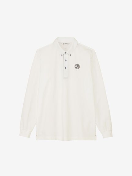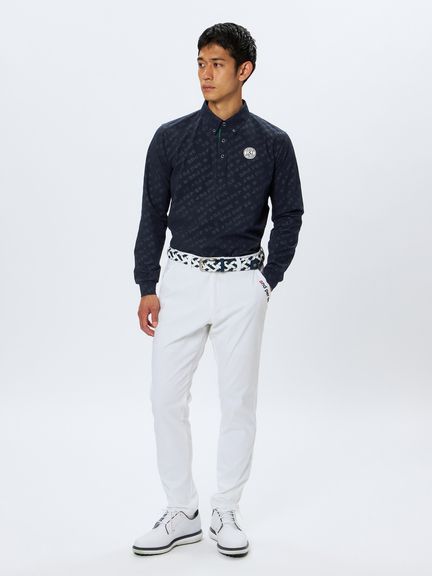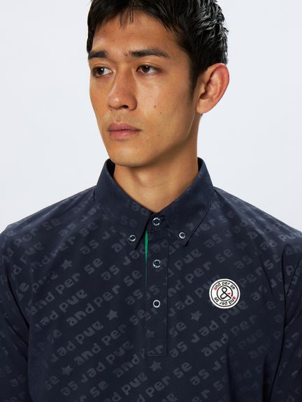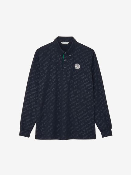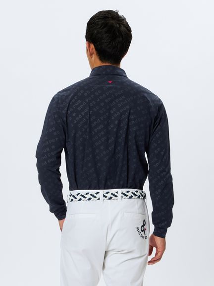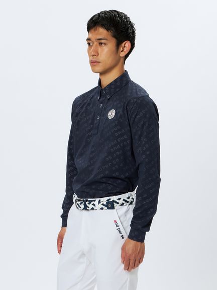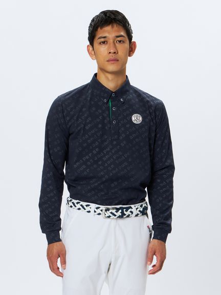 マルチな機能を持つ素材で作成した総柄ロゴエンボス(型押し)素材のロングスリーブシャツです。吸汗速乾、ストレッチ、UVガード(UPF30-50+、紫外線カット率90%以上)機能をもったジャージー素材。軽くて柔らかな風合いで着心地が良いのが魅力です。一見は無地のシャツに見えつつ、角度を変えるとブランドロゴが浮き上がるエンボス加工が特徴。ボタンダウン仕様となっており、ゴルフプレイ中も上品な印象を保ってくれるデザインです。