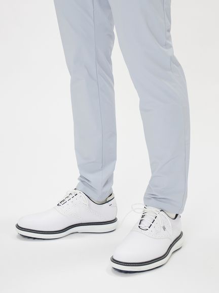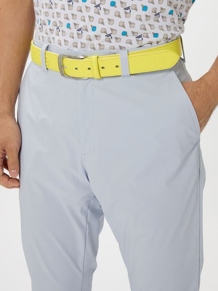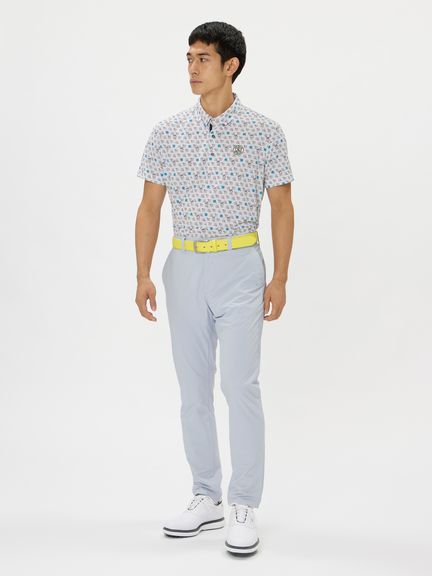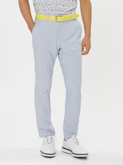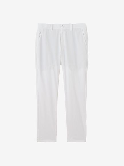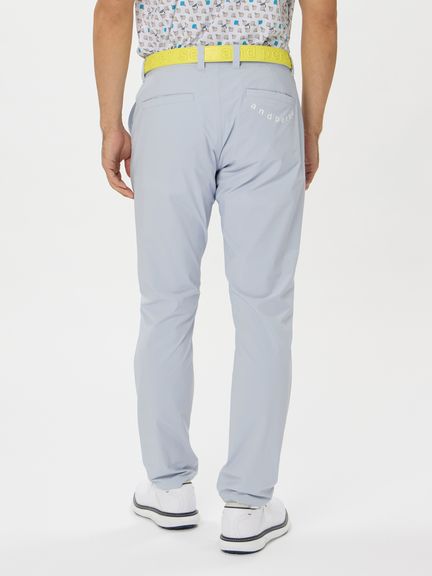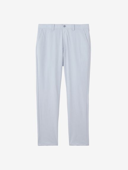 ストレッチ性だけでなく、裏側のべたつき軽減機能、UVプロテクト(UPF50+、紫外線カット率95%以上)機能、接触冷感、抗菌防臭と多機能を持つクールラスティング・Wクロス素材のテーパードパンツ。発汗量の多い状態でも肌にまとわりつきにくい、裏側を点接触組織で仕上げた特殊ドライ素材を使用。ウエストにゴム内蔵の三角形マチを入れた&3Dパターンを採用しており、高いフィット感と伸縮性を両立させた着心地を楽しんでいただけます。色違いで持っていただくのもオススメです。裾上げ済みの始末となっております。