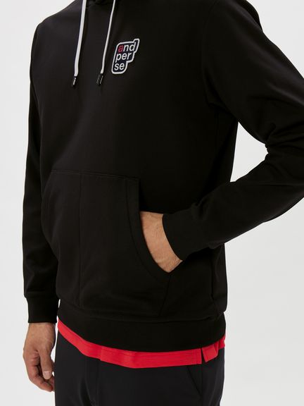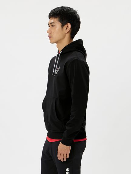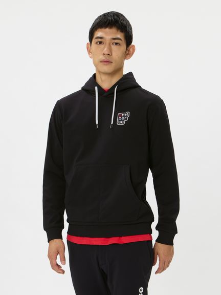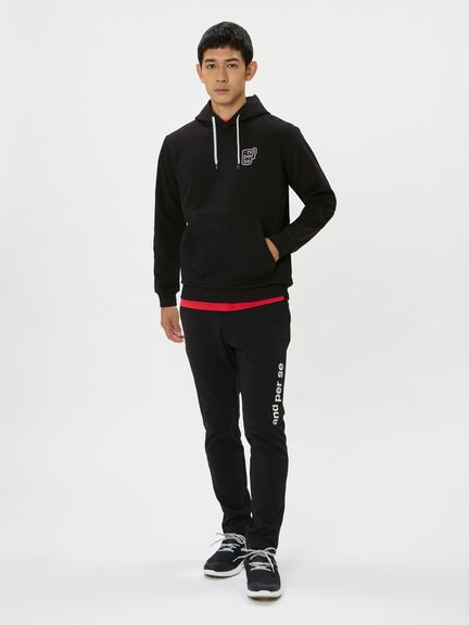 前身頃にand per seロゴ、後身頃にChupa Chupsロゴを配したコラボレーション企画フーディープルオーバー。マルチストレッチ、UVプロテクト(UPF50+、紫外線カット率95%以上)、抗菌防臭、べたつきを軽減する、裏側凹凸組織のソフトなスウェット素材を採用。オーセンティックなデザインで日常使いにもおすすめのプルパーカ。首周りの空き具合や袖口のフィット感など,ゴルフ練習などの際での動きやすさを考慮した設計になっています。