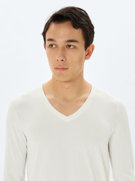 夏のゴルフに欠かせない、遮熱&UVプロテクト(UPF50+、紫外線カット率95%以上)機能を併せ持つCOOL is COOL素材のVネック長袖インナーシャツ。暑さ予防となる遮熱性(遮熱率35%以上)や、日焼け予防となるUVカット機能を併せ持つ特殊開発素材を使用。マルチストレッチ・吸汗速乾・接触冷感の機能も完備しているので心地よい着用感となっているのもポイント。コーディネートにメリハリをつけてくれる、程よいブランドロゴ使いデザインで仕上げています。