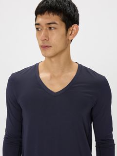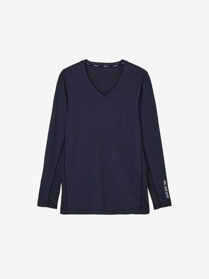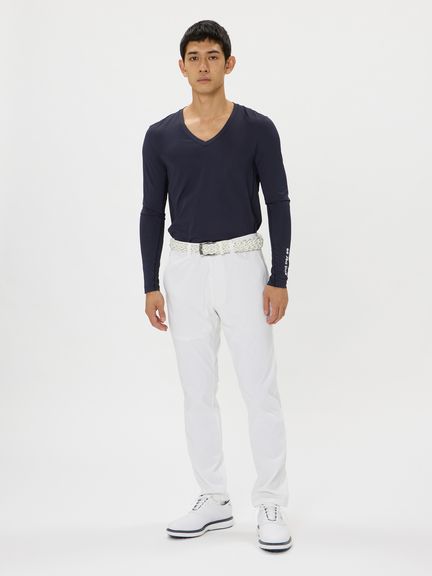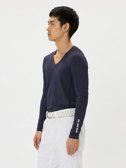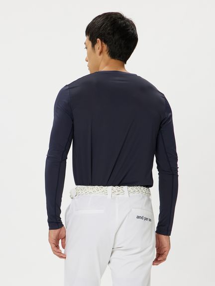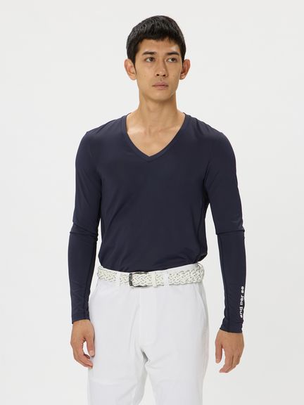 夏のゴルフに欠かせない、遮熱&UVカット機能を併せ持つCOOL is COOL素材のVネック長袖インナーシャツ。暑さ対策となる遮熱性(遮熱率35%以上)や、日焼け予防となるUVプロテクト(UPF50+、紫外線カット率95%以上)機能を併せ持つ特殊開発素材を使用。マルチストレッチ・吸汗速乾・接触冷感の機能も完備しているので心地よい着用感となっています。暑くて日差しの強い季節にマストなインナーアイテムです。シンプル&ベーシックカラーで様々なコーディネートができるのも嬉しいポイントです。縫製は肌当たりの優しいソフトウーリー糸を採用しています。