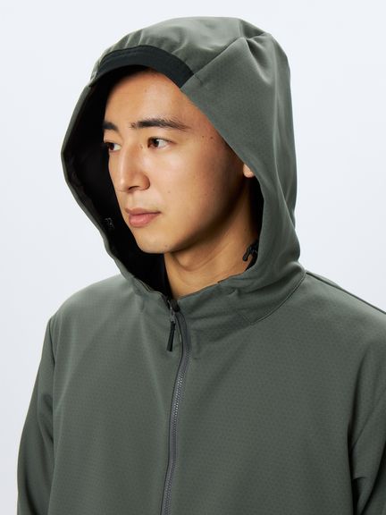 - 身生地:Smooth&Grid Stretch 3Layer/3レイヤーカットソー(ポリエステル100%)フード(表・裏)・脇(ポリエステル100%)袖口・フード口(ポリエステル95%、ポリウレタン5%)