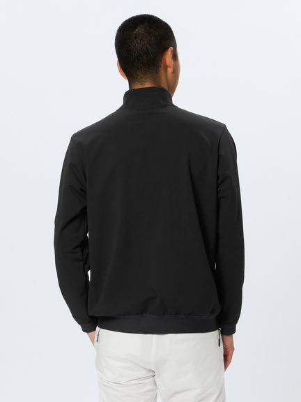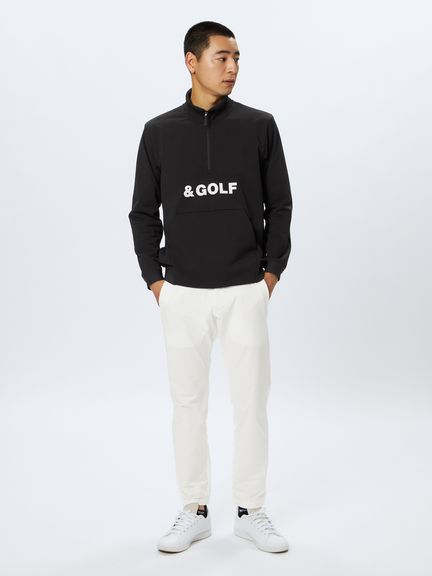 肌触りが良く、全方向へのストレッチ性を持つ裏毛カットソー(スウェット)素材「エアリー・フレンチテリー・エコ」を使用したハーフジップシャツ。