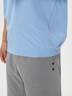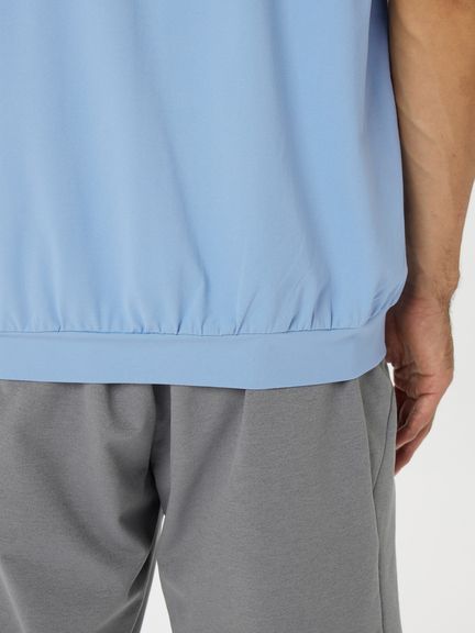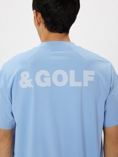 裾部分が「スイング後にせり上がった裾が、スッと元に戻る(落ちていく)」ことを想定した特殊パターン仕立てとなっており、ゴルフ練習用ウエアとしても大活躍してくれる一枚です。背中部分のロゴを「格子状プリント」にすることによりプリント部分も通気性を確保して暑くなりにくいという点も魅力。