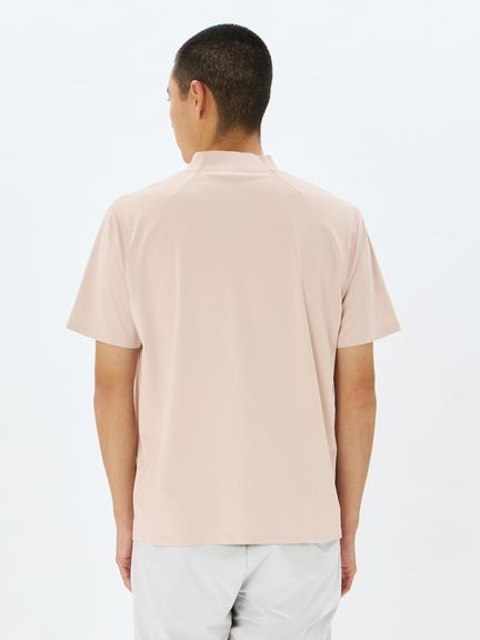 遮熱機能を持つコンパクトカットソー素材で仕上げたモックネックシャツ。マルチストレッチ&吸汗速乾の機能+上品な表情が特徴的な鹿の子素材に、酸化チタン・エアコーティングを施し、元来の通気性・柔らかさを維持しながら「日傘に求められる基準(S35)」をクリアする遮熱機能を完備。ゴルフスイングでの動きを計算したパターン・着用時の負担を軽減する縫製始末などを組み合わせ、快適な着用感に仕上げました。