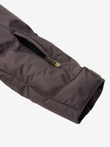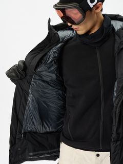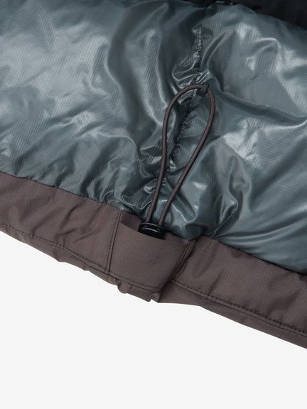 頭の丸みに沿うよう設計されたフードは、ワンハンドアジャスターと操作性に配慮したリリース機能を装備。首元にはダウンバッフルを備え、保温性と防風性の維持にも配慮されています。