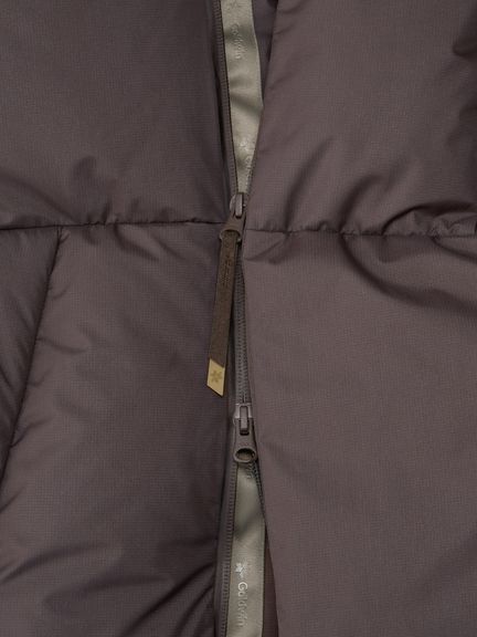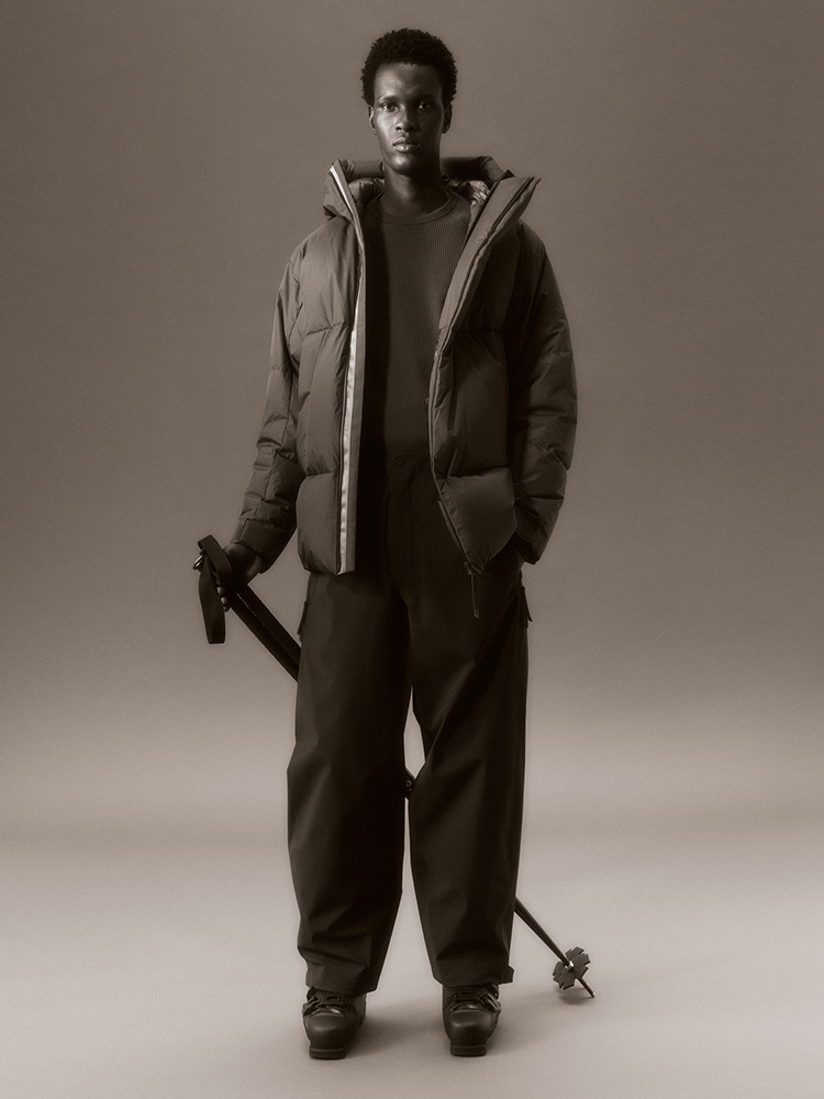 シルエットは、ダウンのふくらみを活かしたリラックスフィット。フロントにはダブルファスナーを採用し、デザインのアクセントとしても機能します。