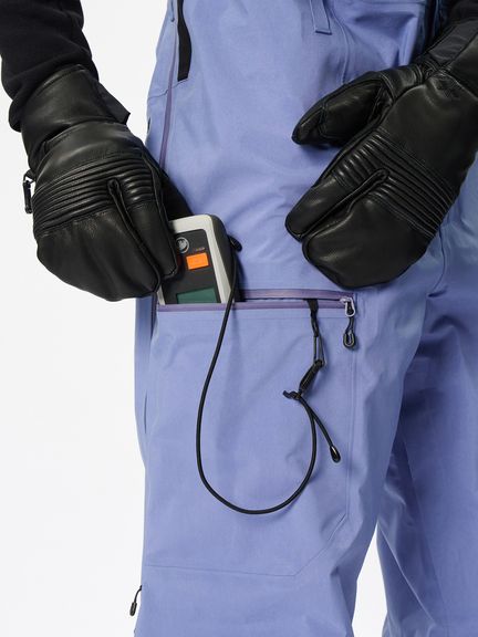 必要十分な耐久性と防水透湿性、さらに軽量性のバランスを追求した、Goldwinのスキービブパンツの最上位モデル。