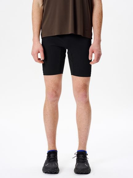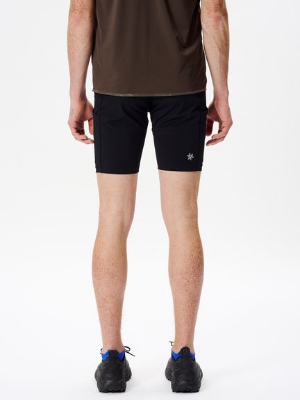 C3fitのタイツのなかで最も短い丈で、足さばきがしやすい設計です。左右の太ももにあしらったロゴは、夜間の視認性を高めるリフレクト仕様。