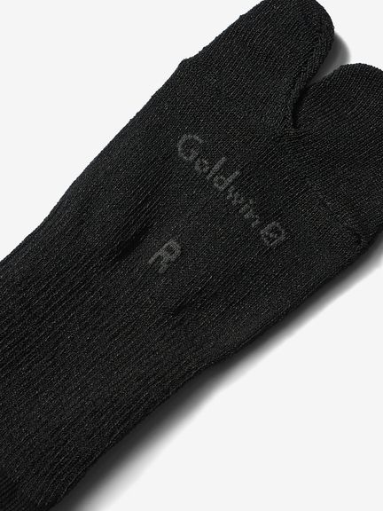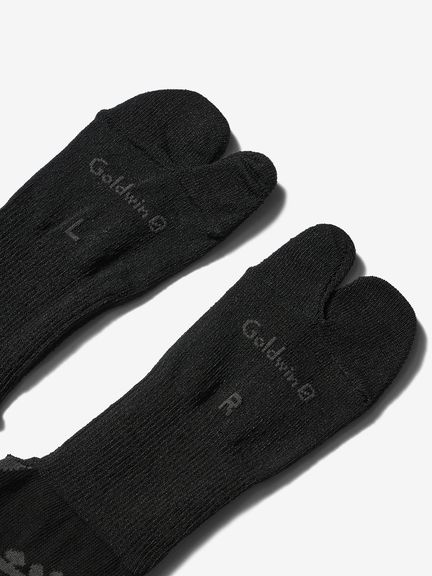 指先が2つになった足袋タイプで、指の操作性や、足の指を使って踏ん張るグリップ性のバランスがいいため、トレイルランニングなどにもおすすめ。5本指タイプに比べ、レース中などの着脱もスムーズです。