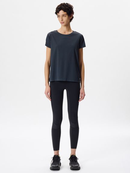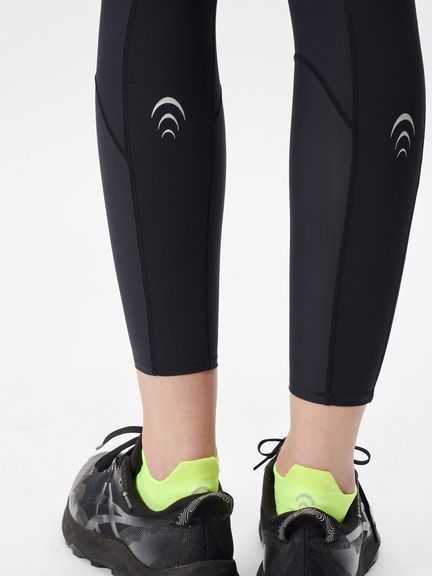 メイン生地には、優れたストレッチ性があり、肌なじみがよいオリジナル素材を採用。ひざ部にはブレをしっかりサポートする生地を配置。ひざまわりを包み込んで運動時の衝撃を吸収しつつ、ひざの大きな屈曲にも対応できる構造にしています。足の外側、内側、腰のサポート部位には軽量・薄手でキックバックの強いストレッチ素材を使用することで、サポート効果を保持しながら軽量性が実現。C3fit独自の立体設計で、運動時のずり落ちや膝裏の生地の溜まりなどを軽減しています。