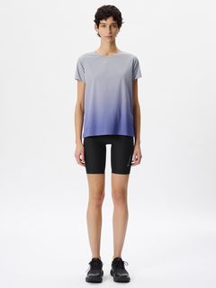 前中心の切り替えをなくすことで、ランニング時などにパンツと合わせず単体でも着用しやすい雰囲気に仕上げました。