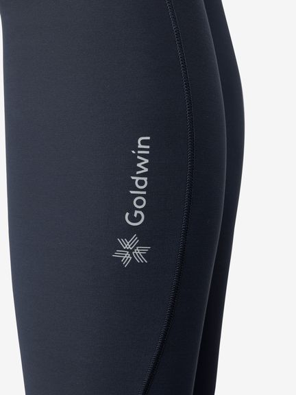 左脚にさりげなくGoldwinロゴをあしらった、シンプルなデザイン。ウエスト部分には、ずり落ちを軽減するためのドローコードを配置しています。
