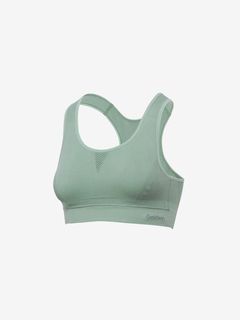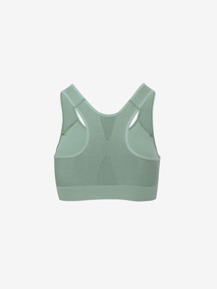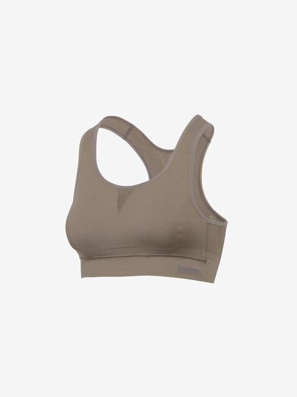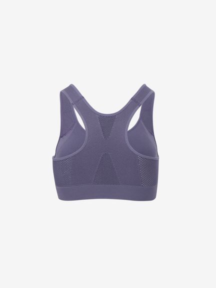ストレッチ性が高く、フィット感に優れているのが特徴。サイド部分の幅とフロント部分の丈を広めに設計することで、バスト全体を面で抑えてしっかりホールドすることができ、バストの揺れを軽減。程よいサポート力がありつつ、快適な着用感を損なわないように仕上げました。アンダーゴムは肌当たりが優しく、締め付け感が少ないものを採用しています。