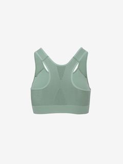 体の動きにしなやかにフィットする運動追従性に加え、背面はYバック構造で、肩甲骨の動きを妨げにくい仕様に。フロントは開きすぎず、きれいに見えるよう設計しています。吸汗速乾性のある生地のため、汗をかいてもすばやく乾いて快適。さらに、パーツによって編地を変え、汗をかきやすい背中心、脇下、胸の谷間をメッシュ構造にして通気性を高めました。