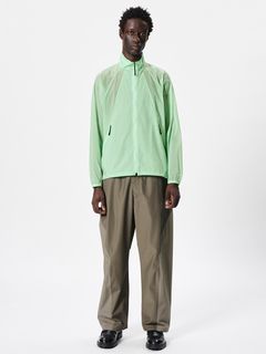 ややゆったりとしたシルエットで、裾のドローコードを絞ることでシルエットの変化を楽しめます。フロントの切り替え線を利用して、両サイドにファスナー付きポケットを配置。