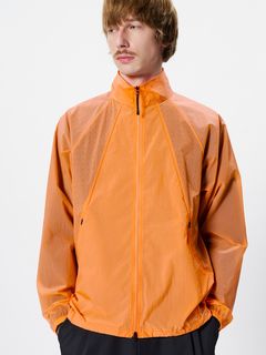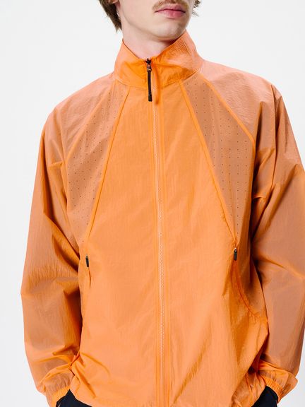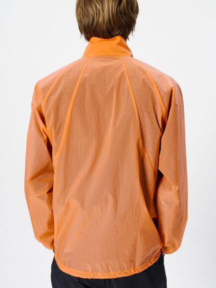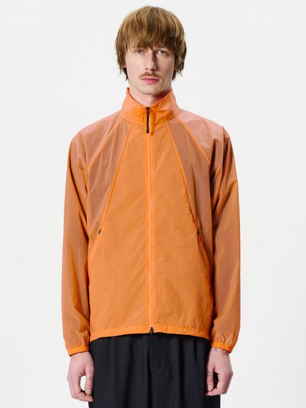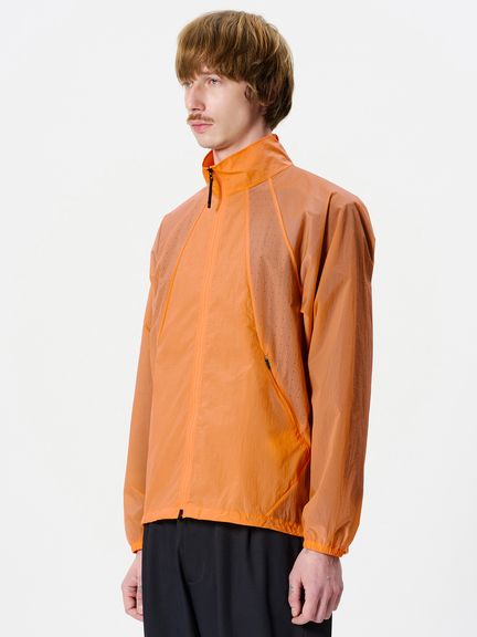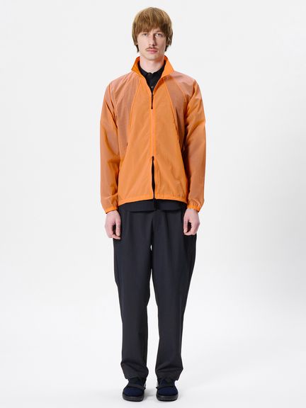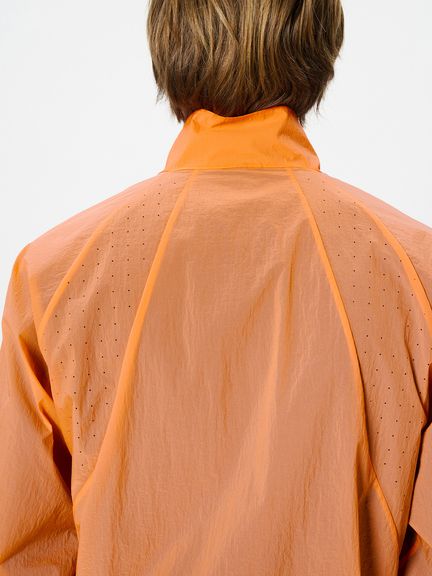 ナイロン素材を平織で薄く仕上げた生地を使用。通気性をもたせるため、脇パネルにはレーザーホールを配しています。