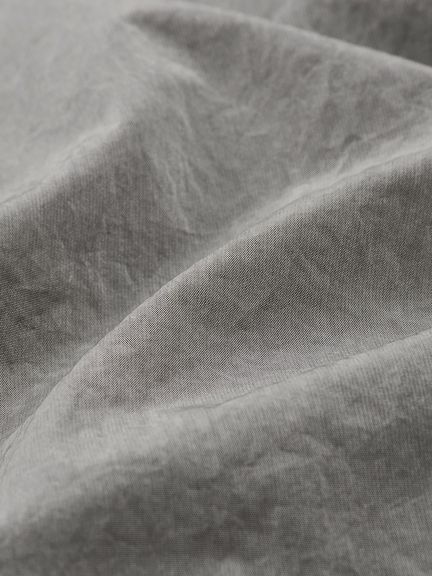 生地の緯糸のみ黒原着糸を使って生地に仕上げることでさりげない色の深みが出て、さらにシワ加工を施すことで、独特の陰影をもたらしています。