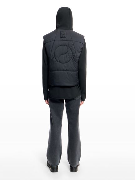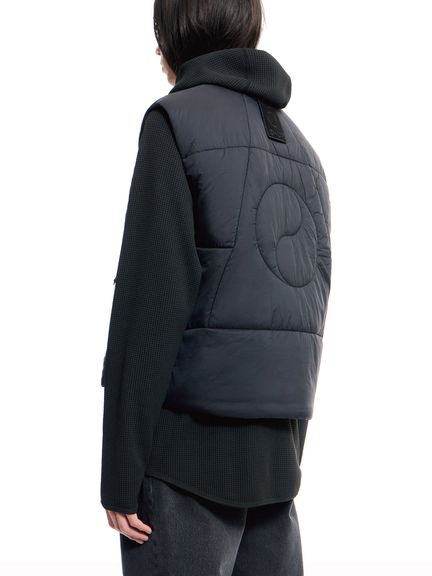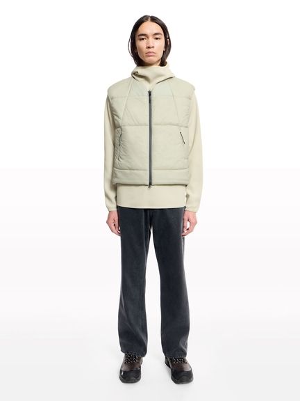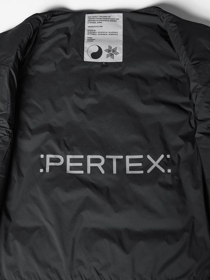 表生地に採用したPERTEXQuantumは防風性とはっ水性を兼ね備えています。中わたにはPrimaLoftBlack Insulation Riseを採用。非常に軽量ながらも保温性を保つ点が特徴で、柔らかくかさばらないため、コートやジャケットの内外どちらにもレイヤリングが可能です。