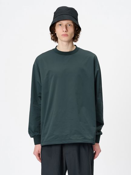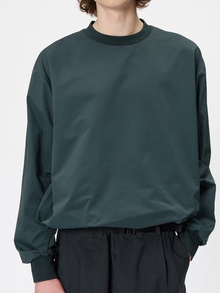 ゆったりとしたシルエット。裾に配したドローコードでシルエットの変化が楽しめ、絞ってブラウジングするとタックインしたような雰囲気になります。