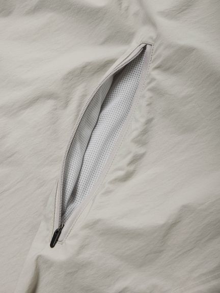 両サイドにファスナー付きのハンドレストポケットを備え、裾のドローコードでシルエット調節が可能。同素材のパンツとセットでの着用もおすすめです。