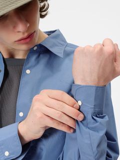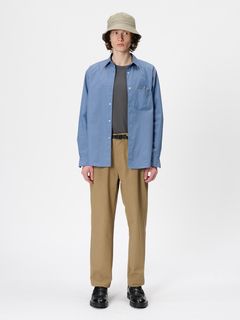 細番手の糸を使うことで、上品な風合いのある、きれいな見た目が実現。形態安定性に優れた繊維を加えることで、シワになりにくく、ノーアイロンで着てもサマになります。